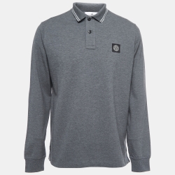 Stone Island Grey Cotton Pique Full Sleeve Polo T-Shirt XL