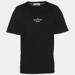 Stone Island Black Print Cotton Half Sleeve T-Shirt XL