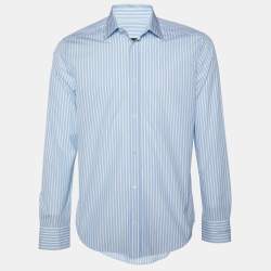 Balenciaga Blue & White Striped Cotton Button Front Shirt L