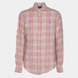 Polo Ralph Lauren Pink/Grey Checkered Linen Classic Fit Shirt L