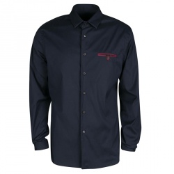Prada Navy Blue Cotton Contrast Collar & Placket Detail Button Front Shirt L
