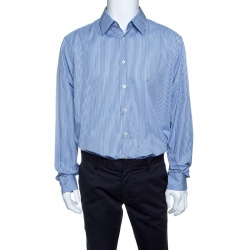 Prada Blue Striped Cotton Button Front Shirt XL
