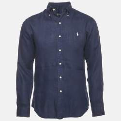 Ralph Lauren Navy Blue Logo Embroidery Linen Button Down Shirt S
