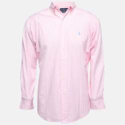 Ralph Lauren Pink Striped Cotton Button Down Custom Fit Full Sleeve Shirt XXL