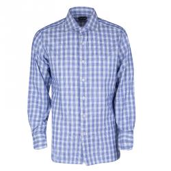 Tom Ford Blue Checkered Cotton Button Front Shirt L