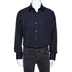Tom Ford Navy Blue Micro Patterned Cotton Long Sleeve Shirt XXL