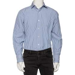 Tom Ford Blue & White Striped Cotton Button Front Shirt L
