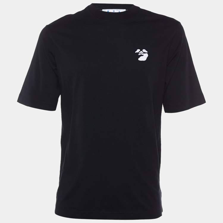 Off-White Black Logo Embroidered Cotton Knit T-Shirt S