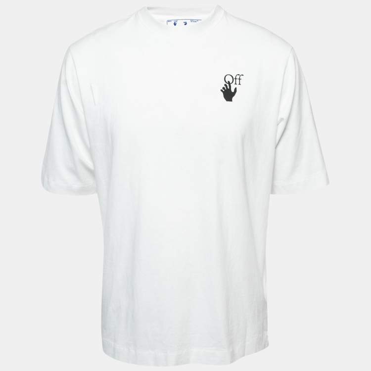 Pre Owned Off-White White Hands Off Logo Print Cotton Crew Neck T-Shirt M