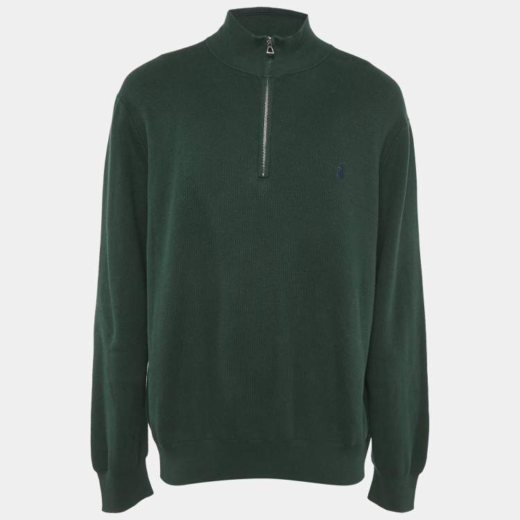 Pre Owned Polo Ralph Lauren Green Pique Cotton Polo Long Sleeve T-Shirt XXL