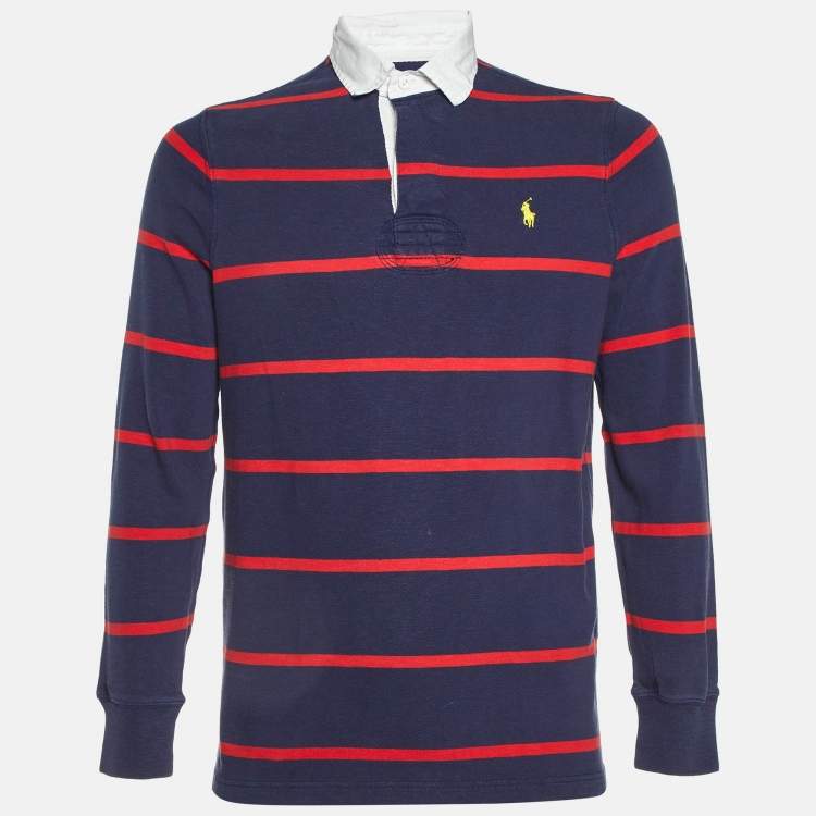 Polo Ralph Lauren Navy Blue Striped Cotton Polo T-Shirt M