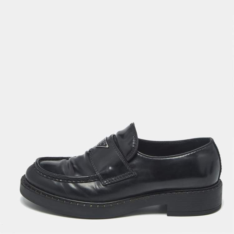 Pre Owned Prada Black Leather Monolith Platform Loafers Size 42