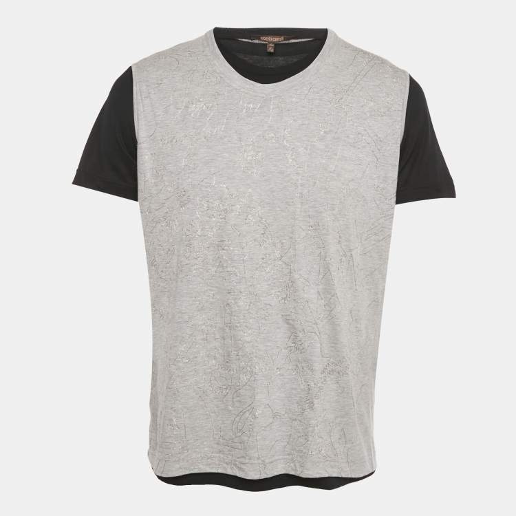 Roberto Cavalli Grey Embroidered Jersey Layered T-Shirt M
