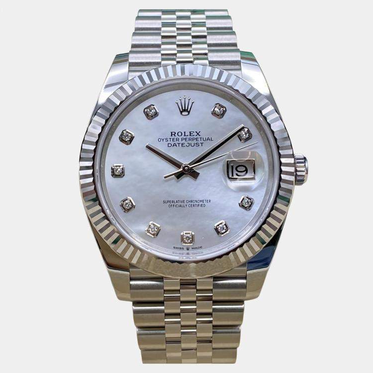 Pre Owned Rolex Datejust 126334 Automatic Mother of Pearl Diamond Dial Stainless Steel 18k White Gold Men's Wristwatch 41mm
