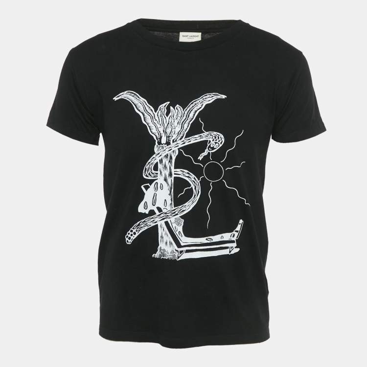 Pre Owned Saint Laurent Black Printed Jersey Crewneck T-Shirt XS