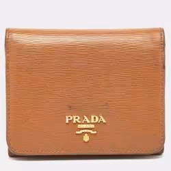 Prada Tan Vittello Move Leather Trifold Wallet