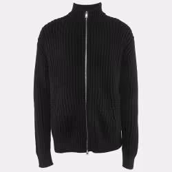 Prada Black Rib Knit Zip-Up Cardigan L