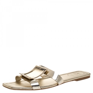 Roger Vivier Gold Leather Crystal Embellishment Ballet Flats Size 37