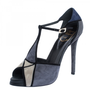 Roger Vivier Blue Denim And Black Leather Trompette Slingback Sandals Size 38