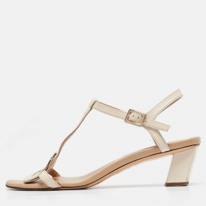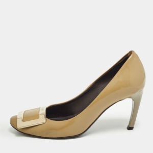 Roger Vivier Beige Patent Leather Metal Logo Round toe Pumps Size 35