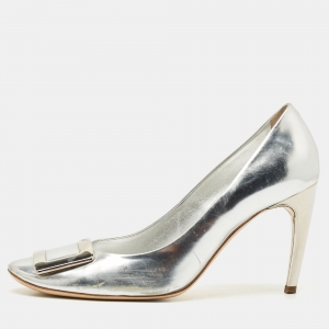 Roger Vivier Silver Leather Crystal Embellished Trompette Pumps Size 40