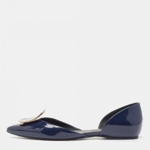 Roger Vivier Navy Blue Patent Leather Belle Ballet Flats Size 38