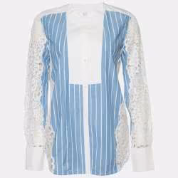 Sandro White/Blue Striped Cotton Lace Trim Dorothee Top L