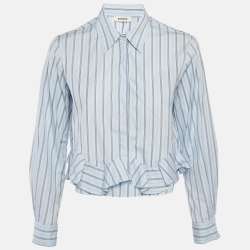 Sandro Blue Striped Cotton Ruffled hem Cropped Shirt S