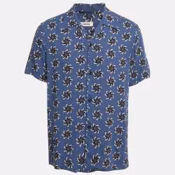 Sandro Blue Floral Print Viscose Half Sleeve Shirt L