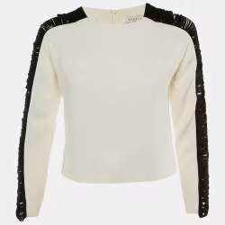 Sandro White Crepe Contrast Sleeve Detail Top S