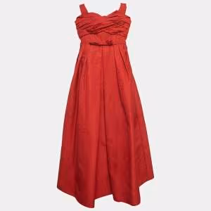 Self-Portrait Red Textured Jacquard Off-Shoulder Midi Dress S