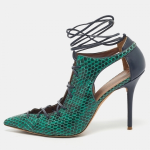 حذاء كعب عالي مالون سولييه مونتانا جلد منقوش كروك بأسود مع رباط مقاس 41