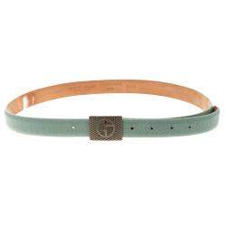 Giorgio Armani Pistachio Green Leather Logo Plaque Belt Size 50