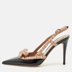 Valentino Black Leather and Patent Leather Rockstud Pumps Size 38