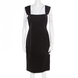 فستان إيلي طهاري ضيق مكسم بلا أكمام كتان ساتان تريكو أسود S