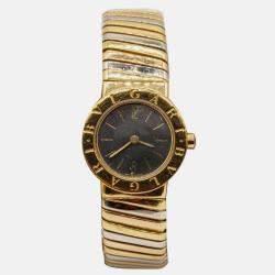 ساعة يد نسائية بلغاري توبوغاس BB19 2T ألماس كوارتز ذهب أصفر عيار 18 قابلة للتوسيع قديمة 19 مم