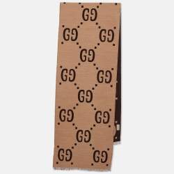 Gucci Brown/Beige GG Jacquard Wool and Silk Muffler