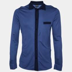 Giorgio Armani Blue Cotton Jersey Full Sleeve Polo T-shirt M