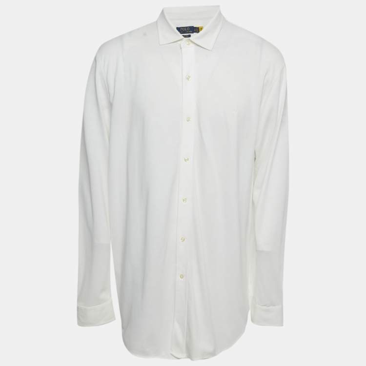 Pre Owned Polo Ralph Lauren White Knit Oxford Long Sleeve Shirt XXL
