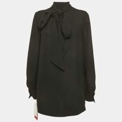 Valentino Black Cotton Blend Tie-Up Neck Detail Puff Sleeve Top S