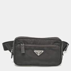 Prada Black Nylon Triangle Logo Front Pocket Belt Bag
