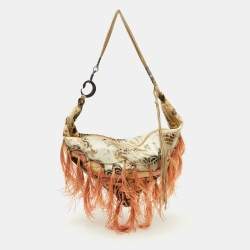 Roberto Cavalli Multicolor Python and Canvas Tassel Shoulder Bag