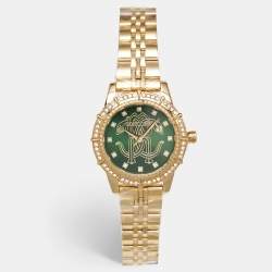 Roberto Cavalli By Frank Muller Green Gold Plated Stainless Steel Diamond Women's Wristwatch 34 mm