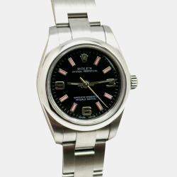Rolex Black Stainless Steel Oyster Perpetual 67180 Automatic Women's Wristwatch 24 MM