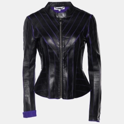 Versace Collection Black Leather Patch Detail Jacket M