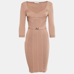 Versace Collection Dark Beige Stretch Knit Bodycon Dress S