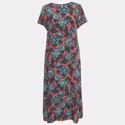Weekend Max Mara Purple Floral Print Silk Aral Midi Dress M