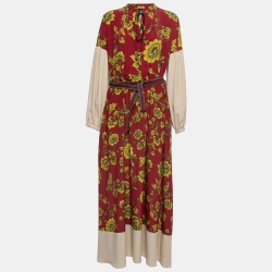 Weekend Max Mara Red Printed Silk Belted Maxi Dress L