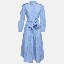 Weekend Max Mara Blue Striped Cotton Long Shirt Dress M