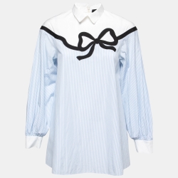 Weekend Max Mara Blue Striped Cotton Bow Detail Blouse S